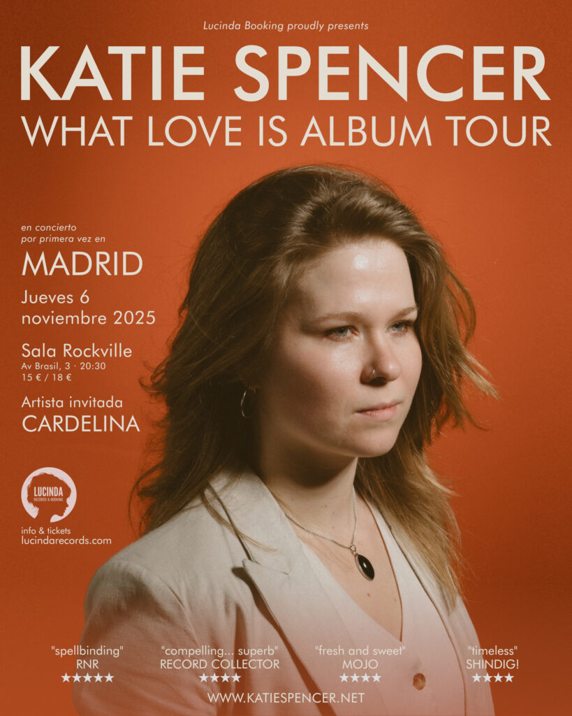 Katie Spencer es una portentosa guitarrista y compositora británica, alabada por su atractiva mezcla de Folk y Jazz. Su nuevo álbum, What Love Is, es una sublime colección de canciones producidas por Matt Ingram (Laura Marling, The Staves), grabado en Londres con destacados músicos como Giacomo Smith (clarinete), Max Clilverd (pedal steel), Tom Mason (contrabajo) y el propio Matt Ingram (batería, sintetizador). El álbum es melódicamente sofisticado, pasando con soltura de paisajes sonoros abiertos con tintes jazzísticos, influidos por Pharoah Sanders y John Abercrombie, al estilo Folk Barroco por el que sus fans la admiran. La música de Katie Spencer es fascinante e imaginativa. Su anterior disco The Edge of The Land alcanzó el puesto 14 en las Listas Folk Británicas por su claridad cristalina y la intimidad de su poética. Una pura exquisitez tanto por su altura como guitarrista como por las melodías ensoñadoras. Katie se siente conectada al idealismo Folk y Progresivo de los primeros 70 de artistas como Michael Chapman, Sandy Denny, Bert Jansch, Joni Mitchell y James Taylor.